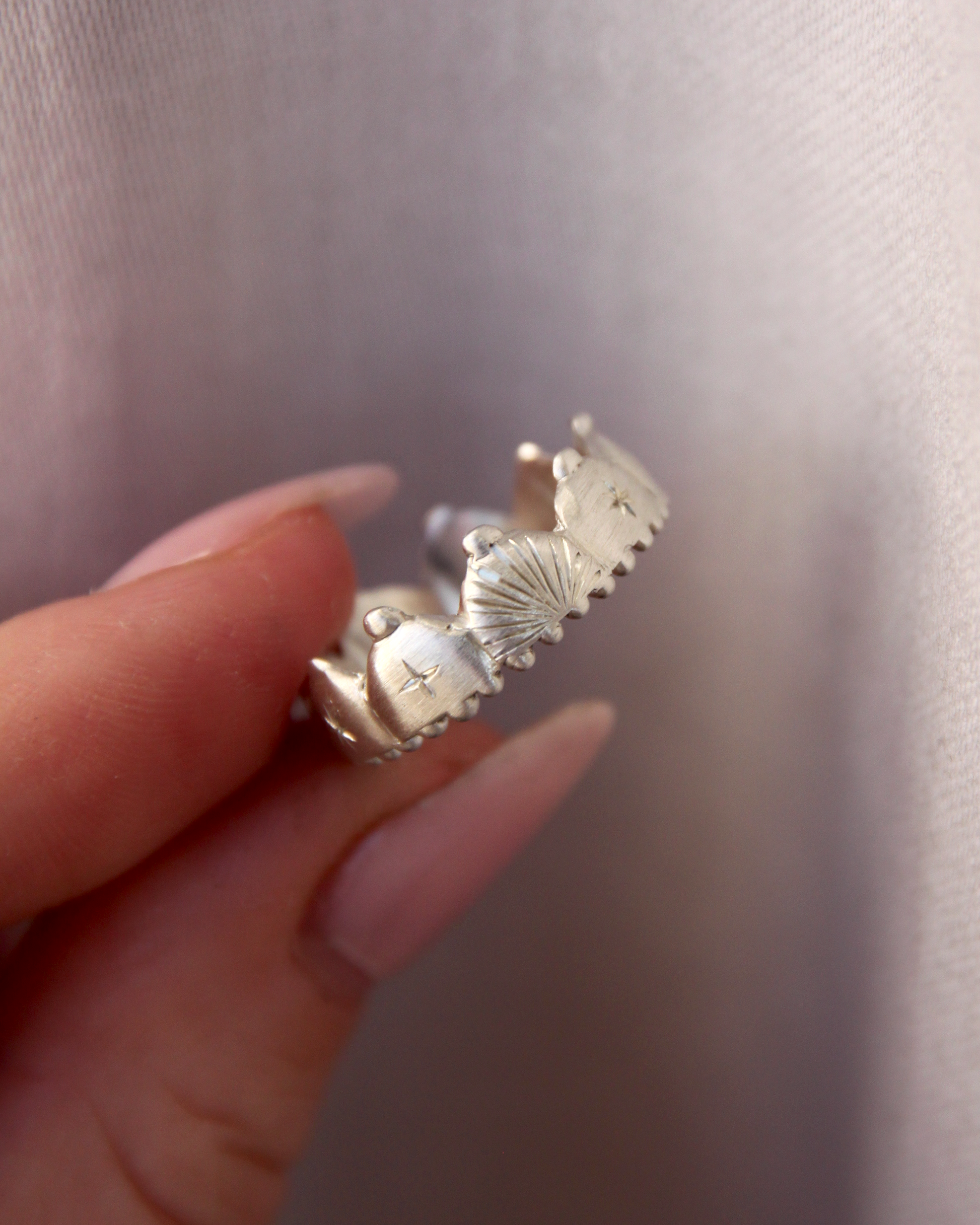 Botanica Crown Ring ~ Hand engraved flower crown for your finger. Celestial and earthly all in one loop of solid silver, with a beaded edge and satin finish.