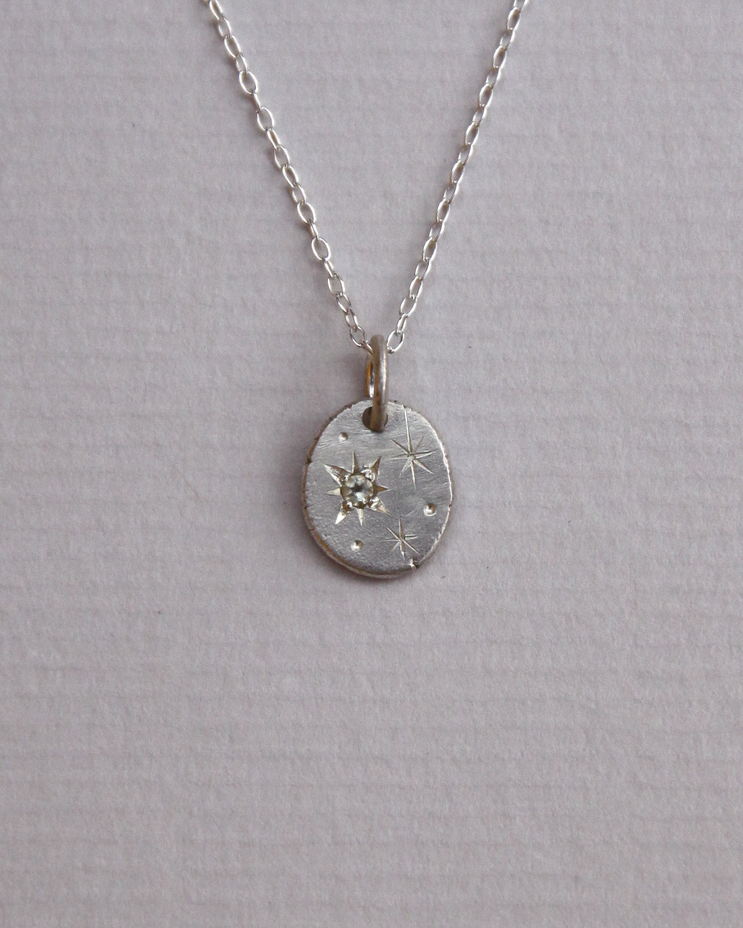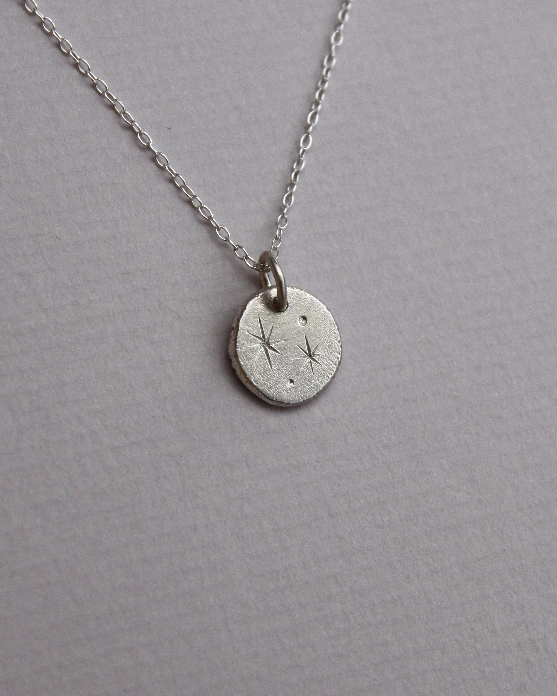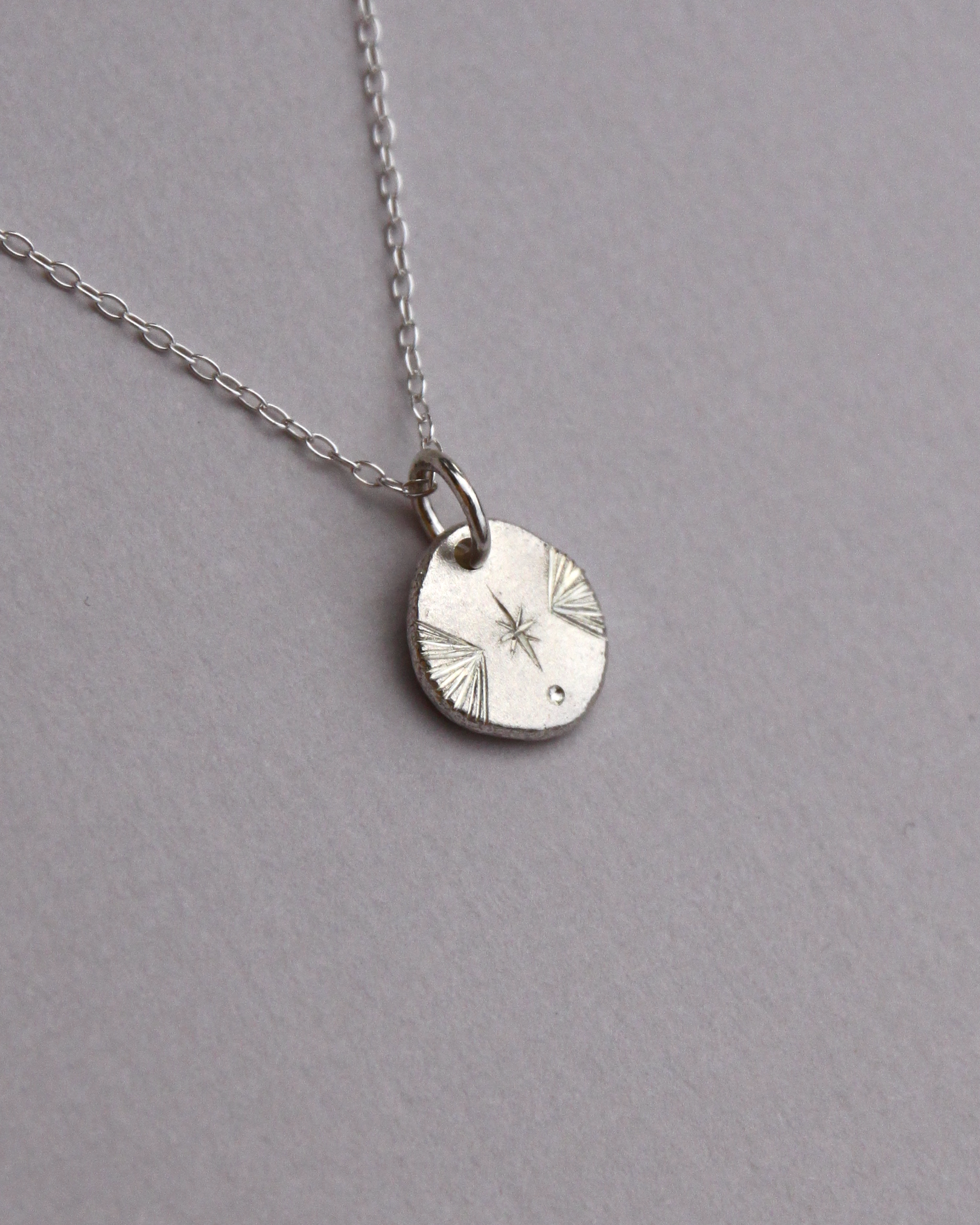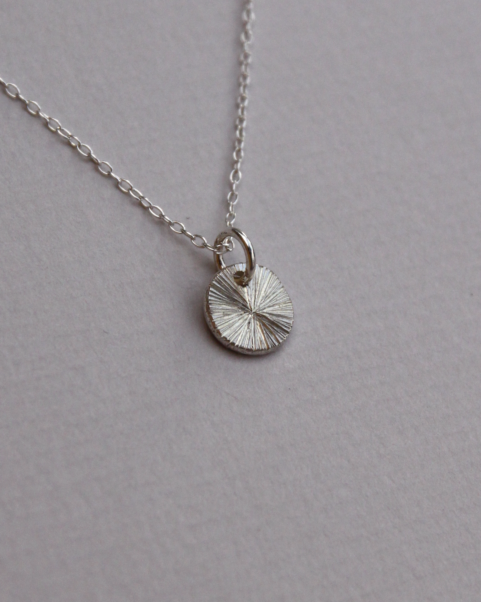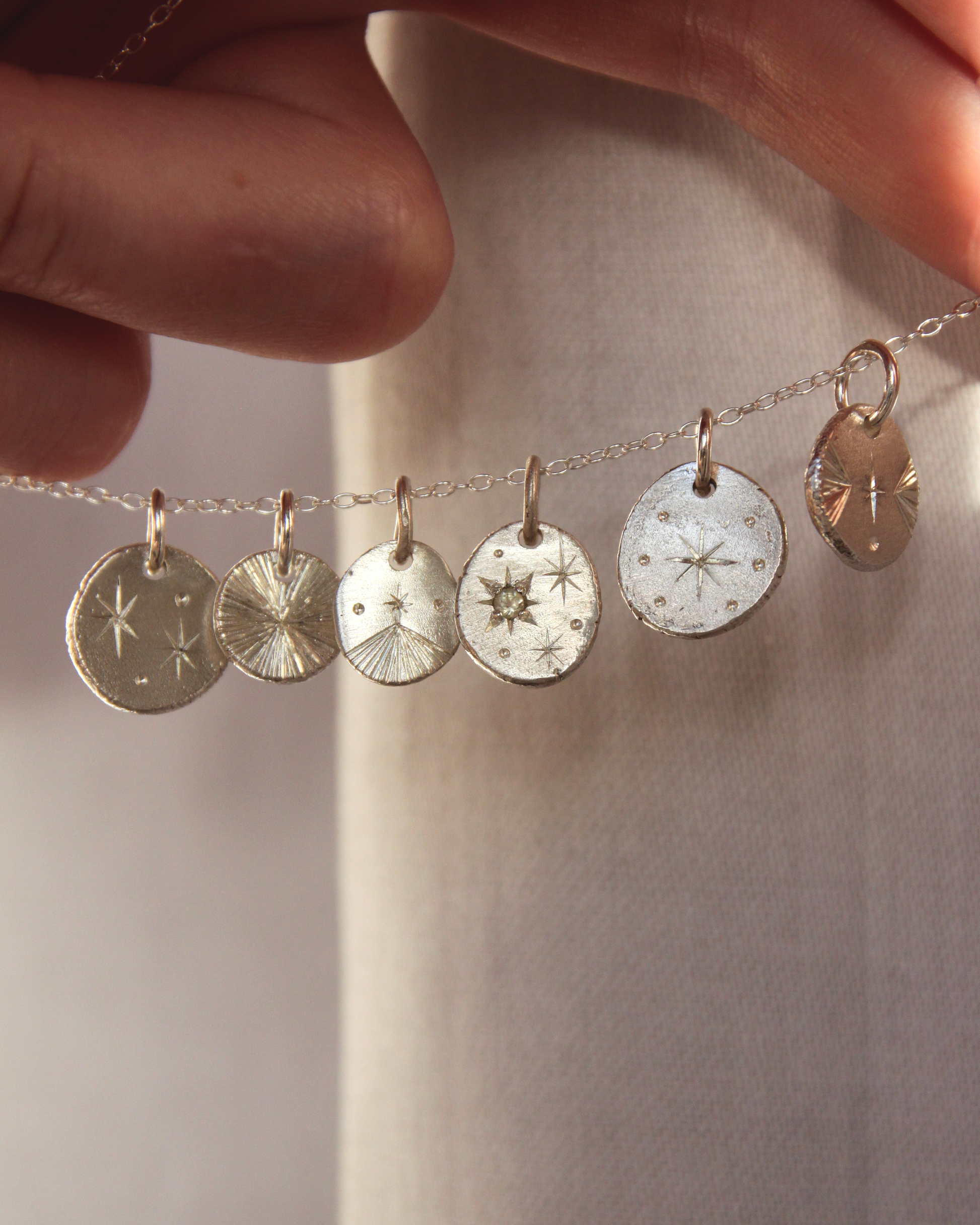 Celeste charm ~ organic slices of silver with hand engraved designs.
