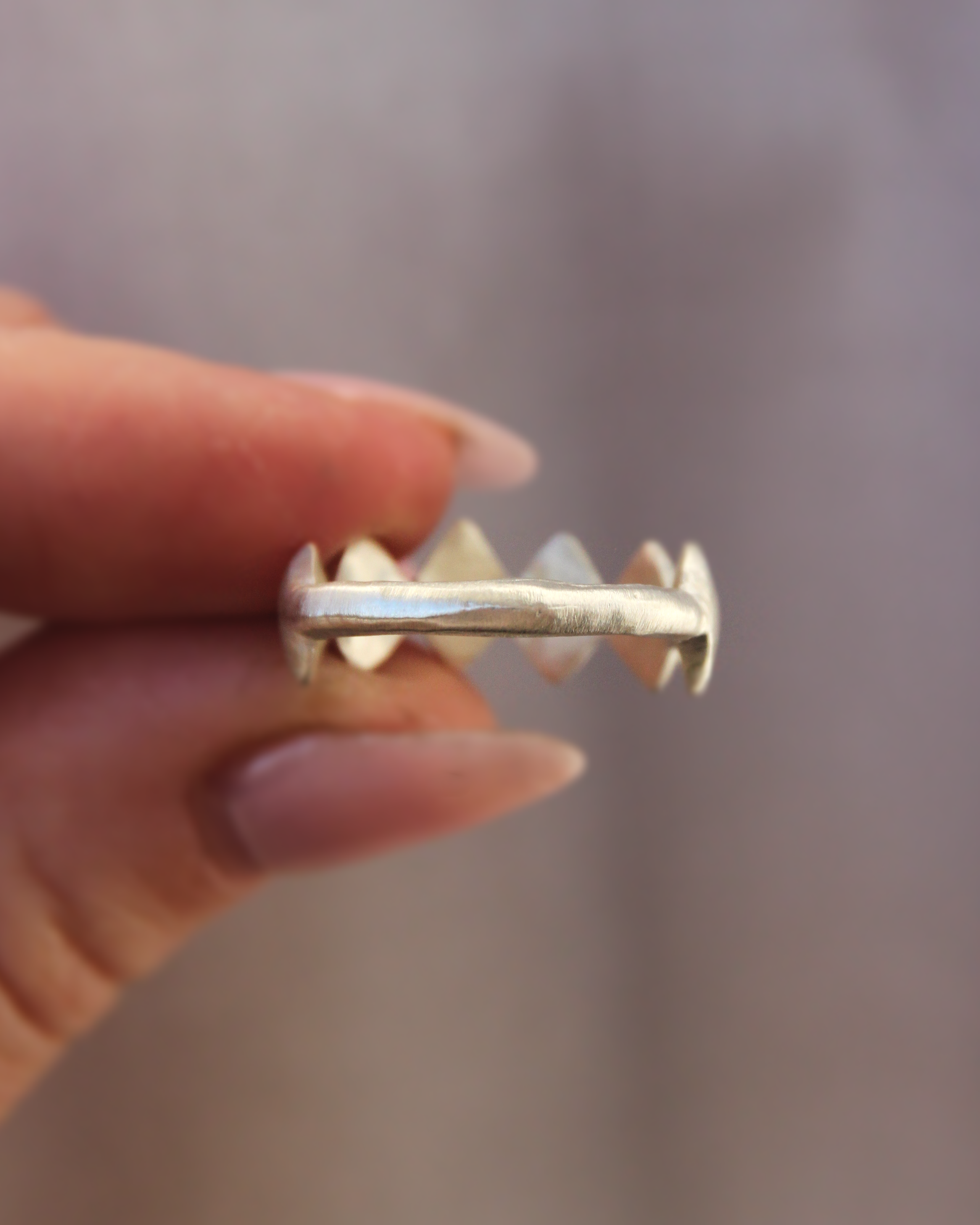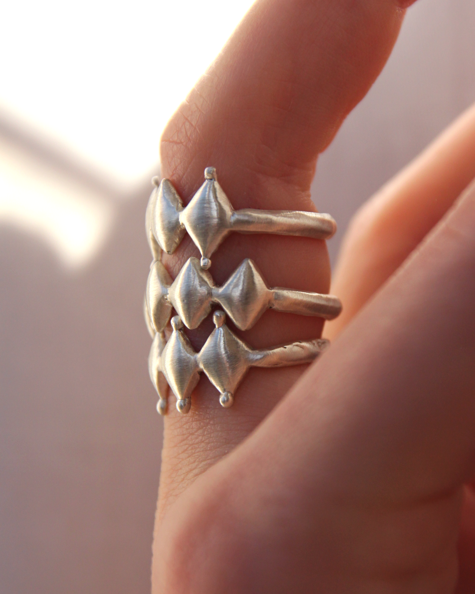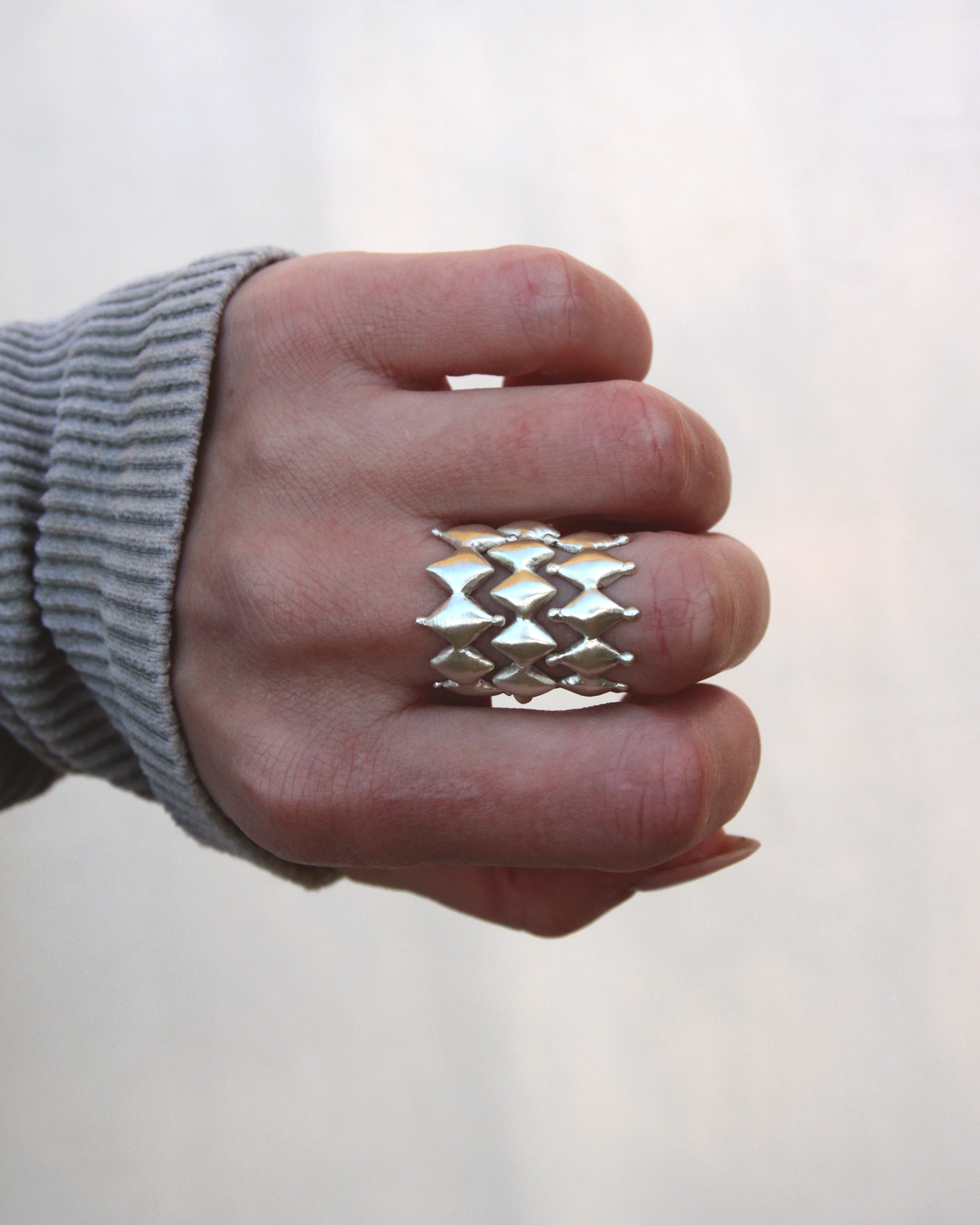 Harlequin ring - solid sterling silver puffy print, with brushed satin finish. Comfort fit narrow band at the back.