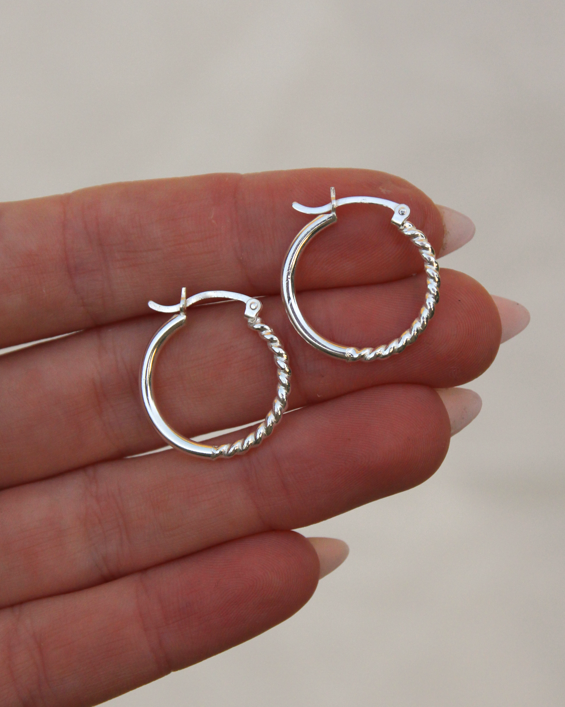 Twister hoops ~ Half and half twist hoops with polished finish. Hook and clasp fastenings.
